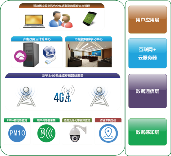 道路揚塵在線監(jiān)測裝備采用了基于β射線原理的高精度顆粒物監(jiān)測技術(shù),擴展功能豐富,可接入道路噪聲、積水、積雪、結(jié)冰、作業(yè)車輛等智能感知單元,并通過“物聯(lián)網(wǎng)”和“大數(shù)據(jù)”技術(shù)將道路顆粒物數(shù)值、道路環(huán)境噪聲值、保潔作業(yè)車輛統(tǒng)計等參數(shù)實時傳輸至云服務(wù)平臺,進行道路揚塵監(jiān)測的大數(shù)據(jù)分析,為全市的道路保潔、車輛交通、環(huán)境治理提供有效的數(shù)據(jù)支撐服務(wù)。 本系統(tǒng)可作為政府監(jiān)管部門全面掌握道路重點揚塵污染源的空間分布和環(huán)境狀況,建立建全道路揚塵綜合防治體系與長效機制,使道路環(huán)境監(jiān)測和管理更加精準(zhǔn)化和智能化,提高監(jiān)管部門對道路及周邊環(huán)境的掌控能力、預(yù)警能力和監(jiān)管效率。